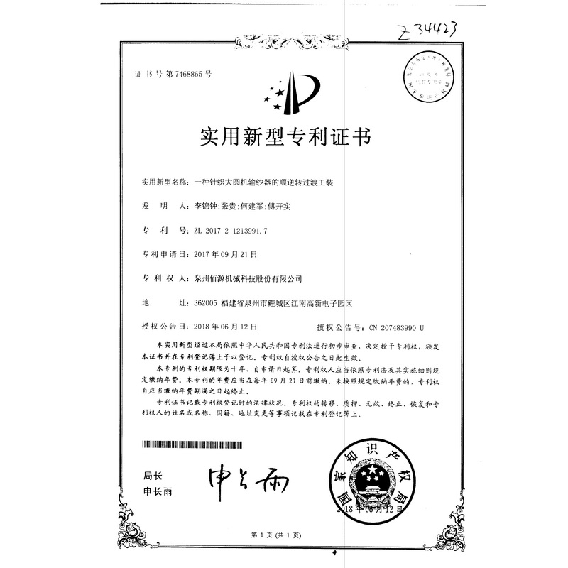 新型-一種針織大圓機輸紗器的順逆轉(zhuǎn)過渡工裝