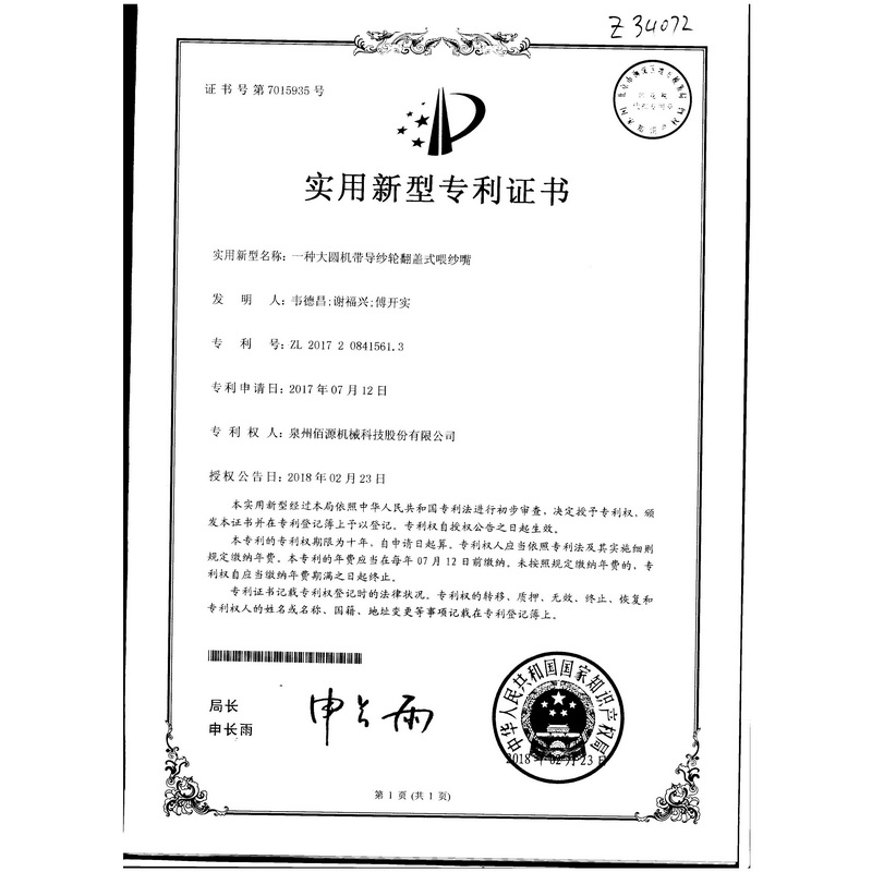 一種大圓機帶導(dǎo)紗輪翻蓋式喂紗嘴