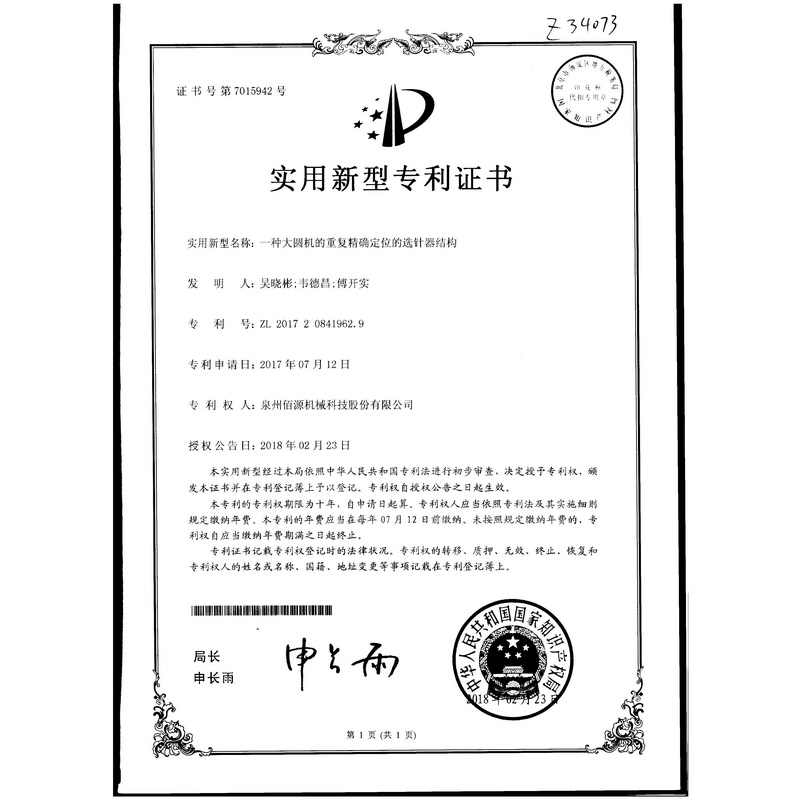 一種大圓機的重復(fù)精確定位的選針器結(jié)構(gòu)