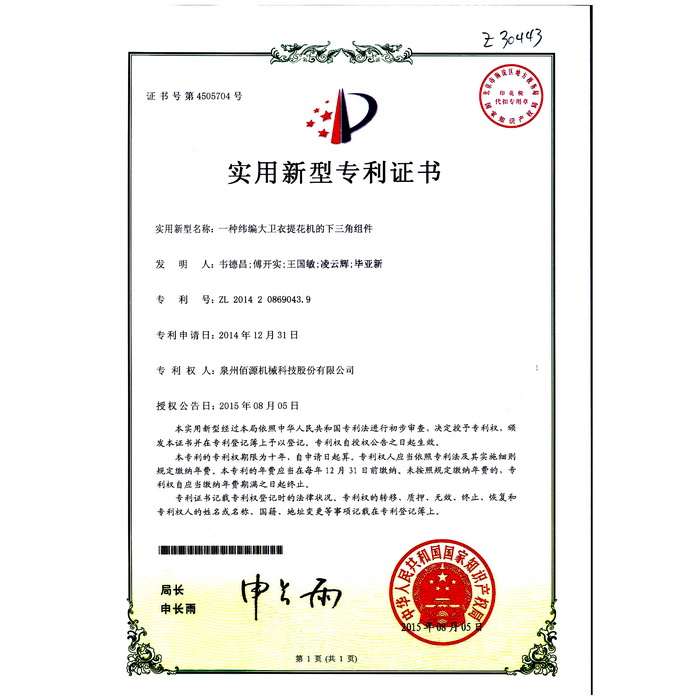04一種緯編大衛(wèi)衣提花機的下三角組件